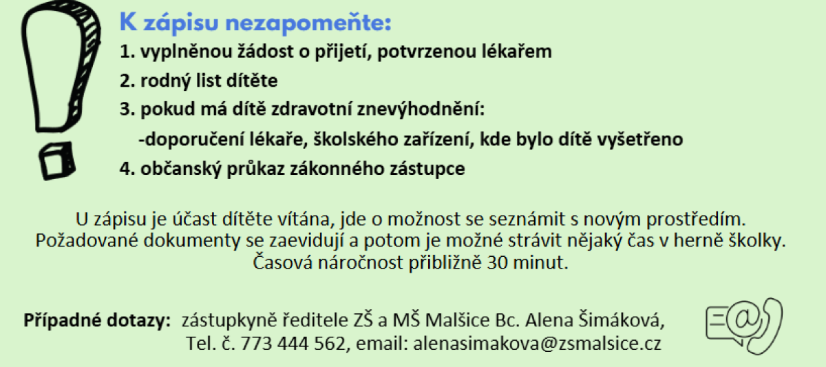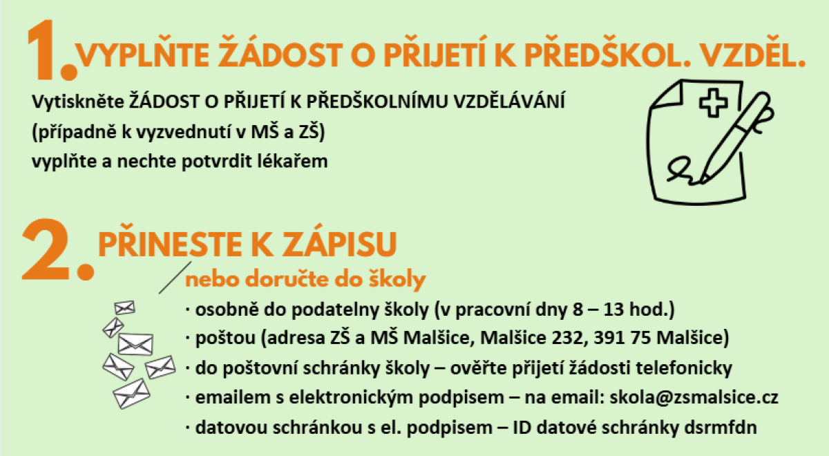 1.Žádost o přijetí k předškolnímu vzdělávání - ke stažení zde