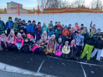 Žáci 2.-5.třídy právě absolvují týdenní lyžařskou školu na Monínci, která probíhá od 9. do 13. února. Každý den tráví na svahu tři hodiny a je radost sledovat jejich pokroky. Někteří stáli na lyžích vůbec poprvé, jiní přijeli své dovednosti zdokonalit.
