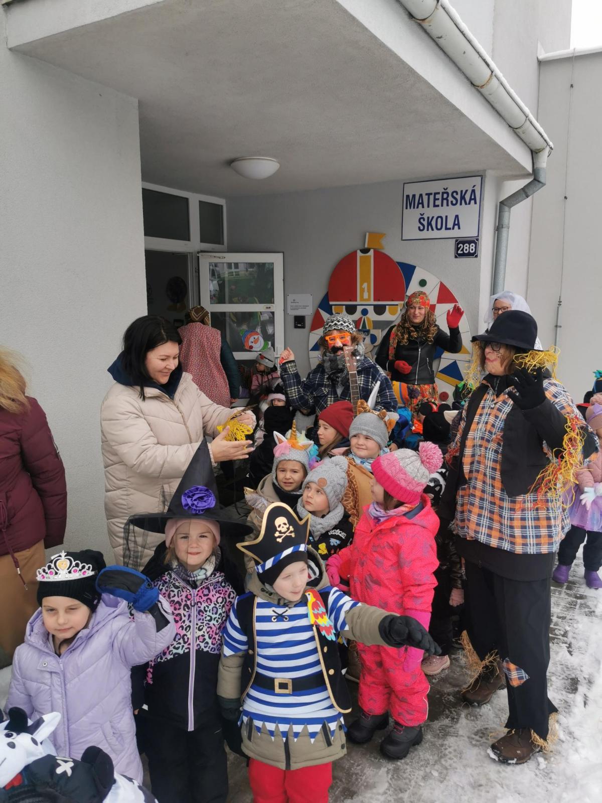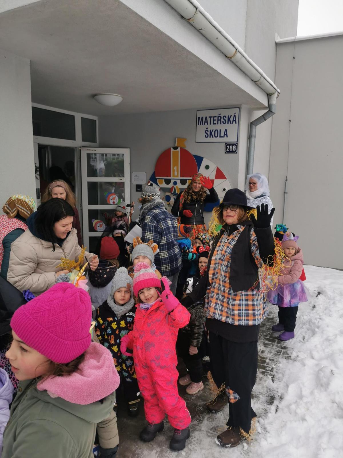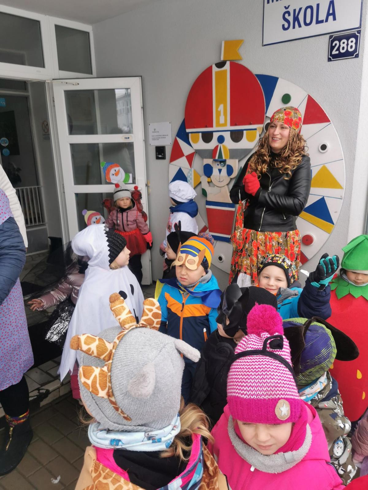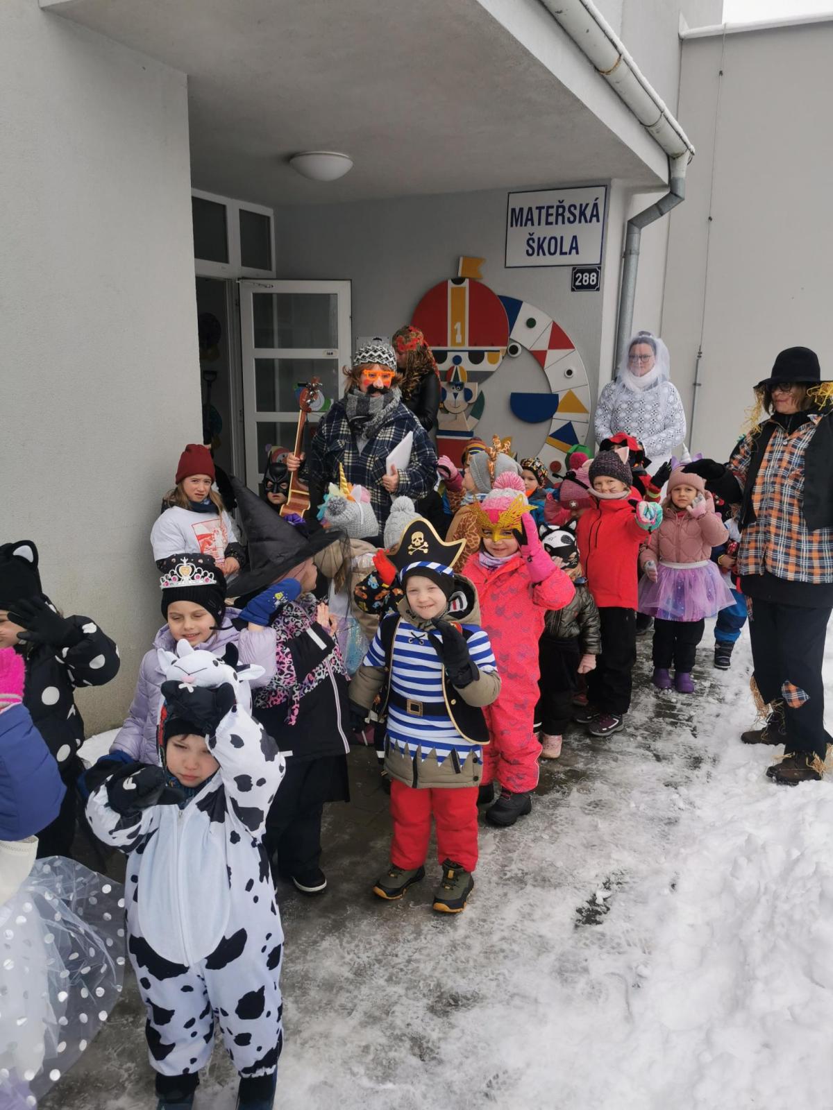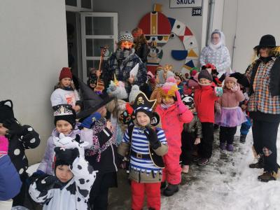 Dnes děti z MŠ i prvního stupně ZŠ zažily tradiční masopustní průvod. V 9:30 vyrazili a na povozu jim hrála kapela, která hned od začátku vytvořila skvělou atmosféru.