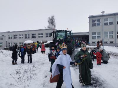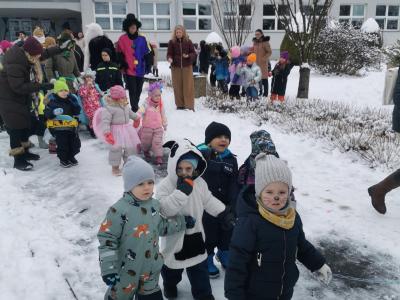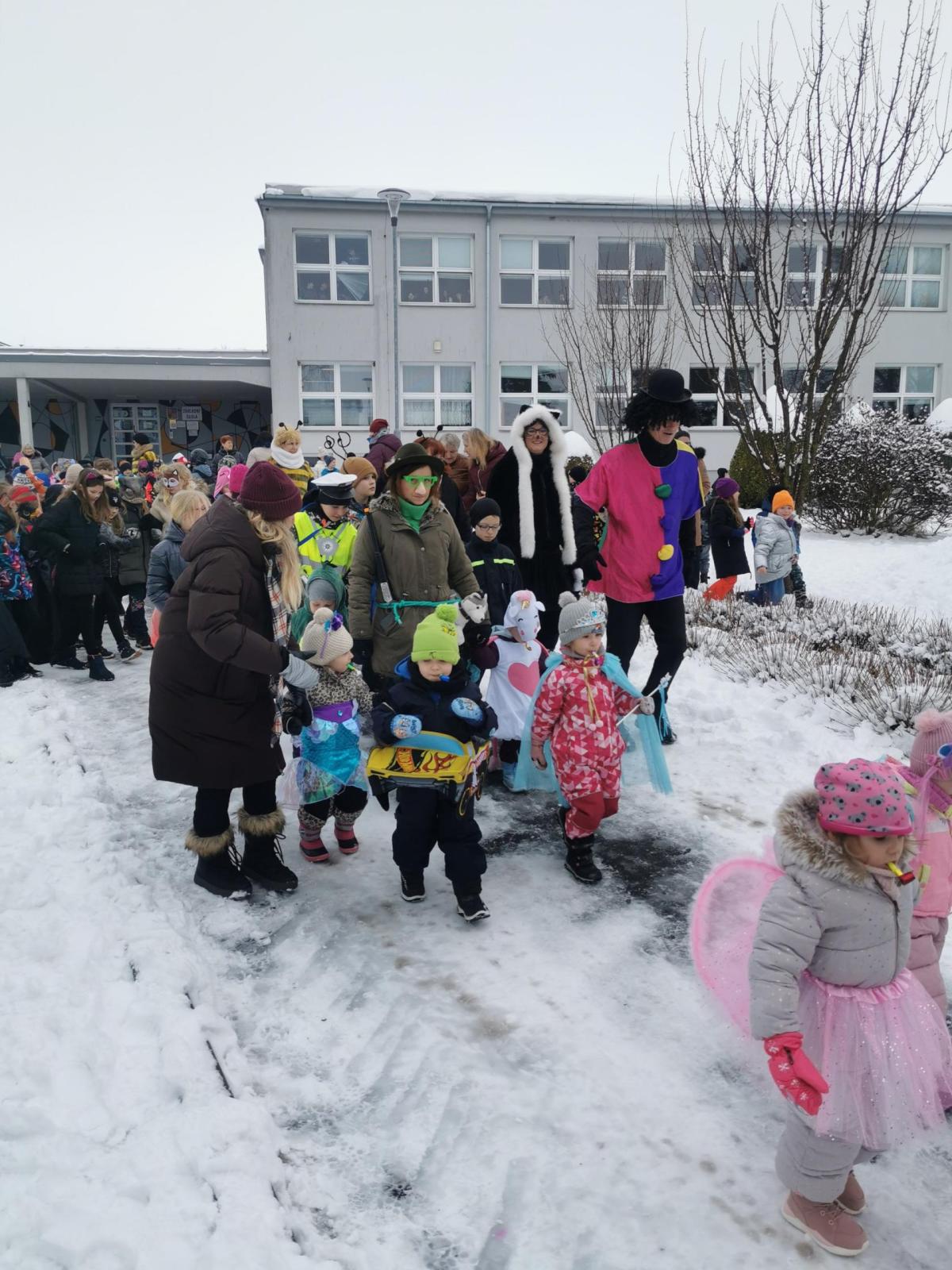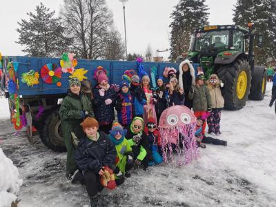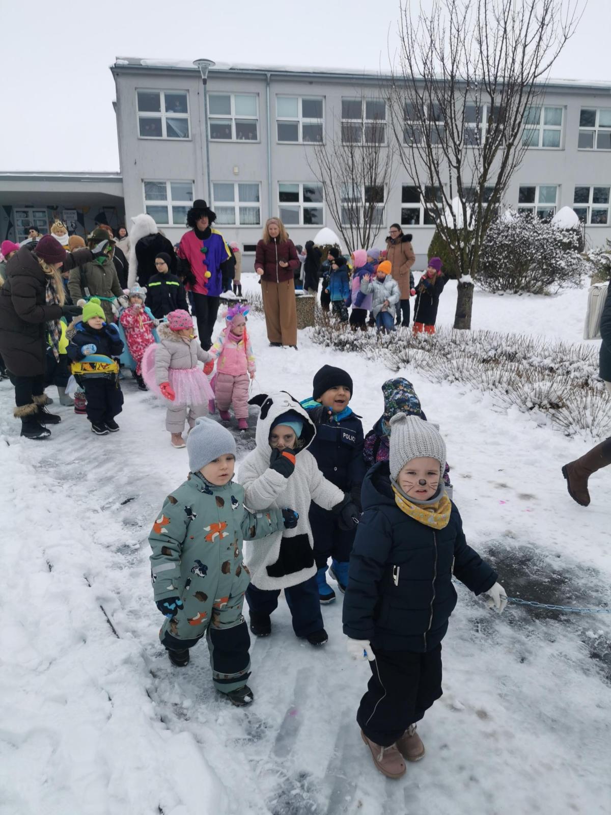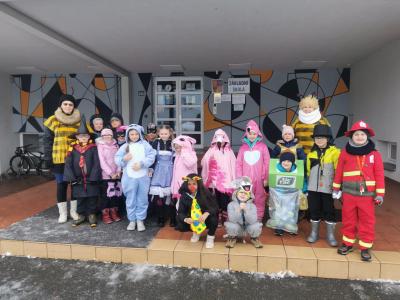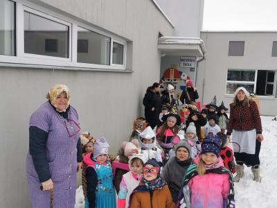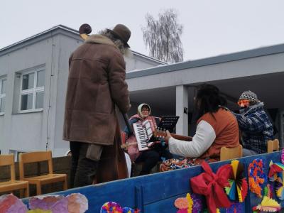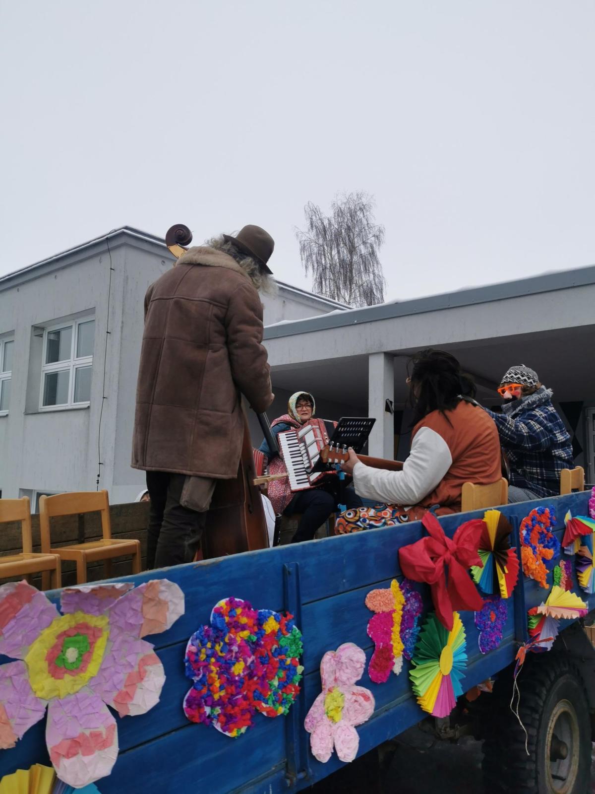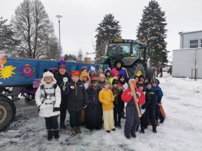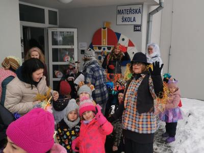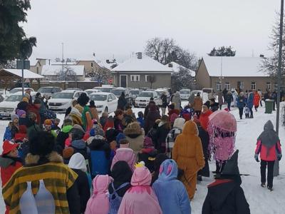 Dnes děti z MŠ i prvního stupně ZŠ zažily tradiční masopustní průvod. V 9:30 vyrazili a na povozu jim hrála kapela, která hned od začátku vytvořila skvělou atmosféru.