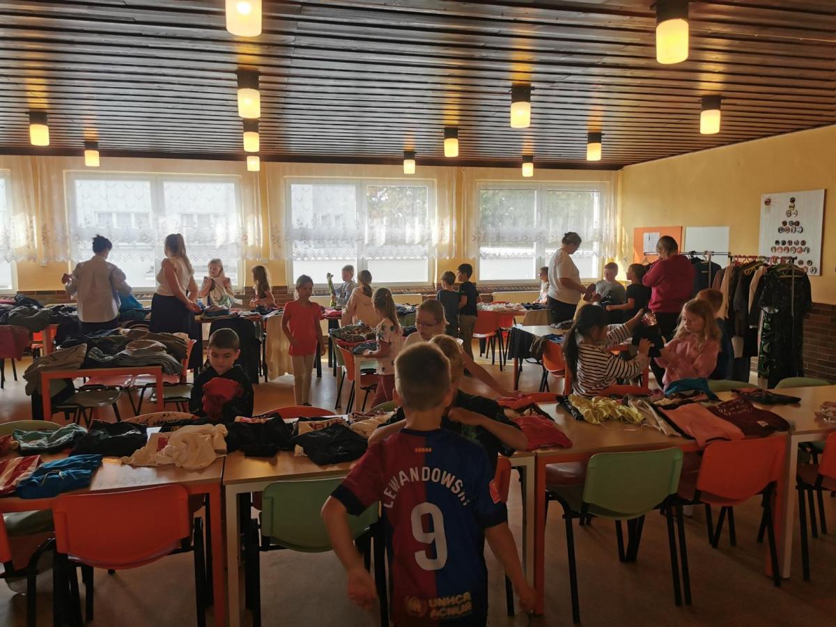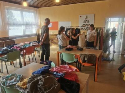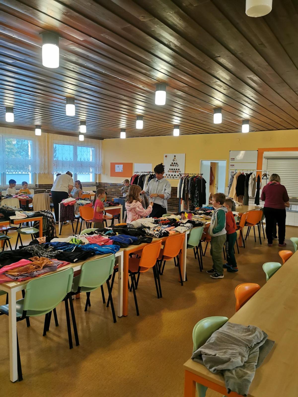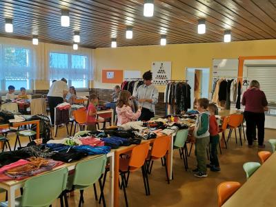 Dopoledne si žáci 1. stupně mohli během vyučování vybrat nové kousky do svého šatníku a od 14:30 byl swap otevřen také pro veřejnost a žáky 2. stupně. Oblečení se sešlo opravdu hodně, děti se na swap těšily a měly velkou radost z nových úlovků.