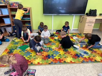 Naše družina se rozhodla využít krásného dne a vydala se pěšky do nedalekého Čenkova, kde je čekalo setkání s mnoha hospodářskými zvířaty. Ani ostatní oddělení družiny nezůstala pozadu! V herně vznikaly úžasné stavby a děti se zapojily i do dalších tvořivých aktivit – kreslení, stříhání a mnoho dalšího.